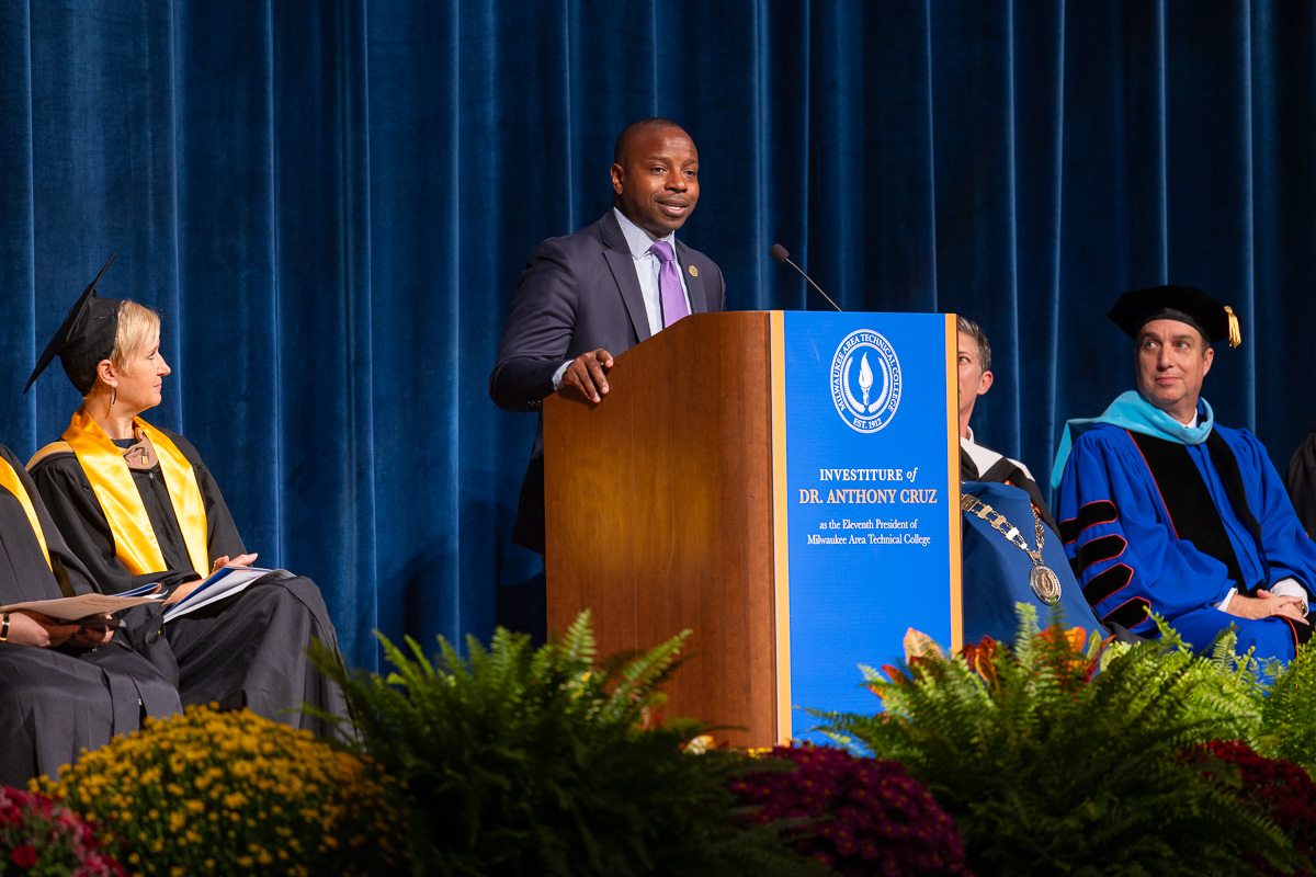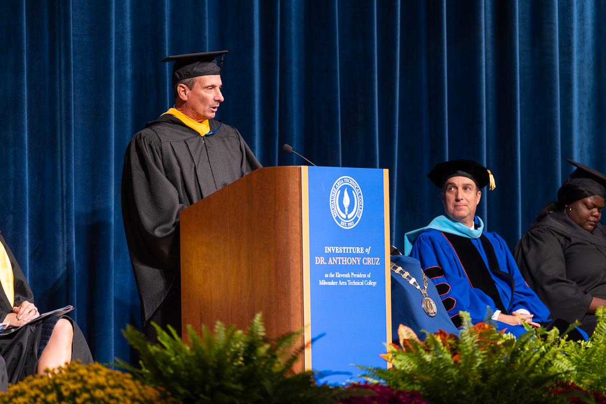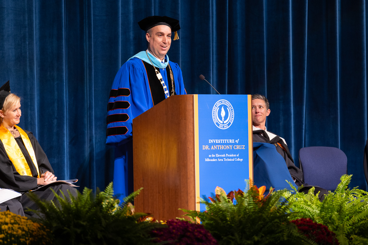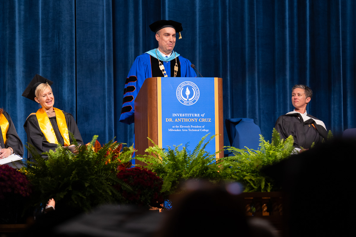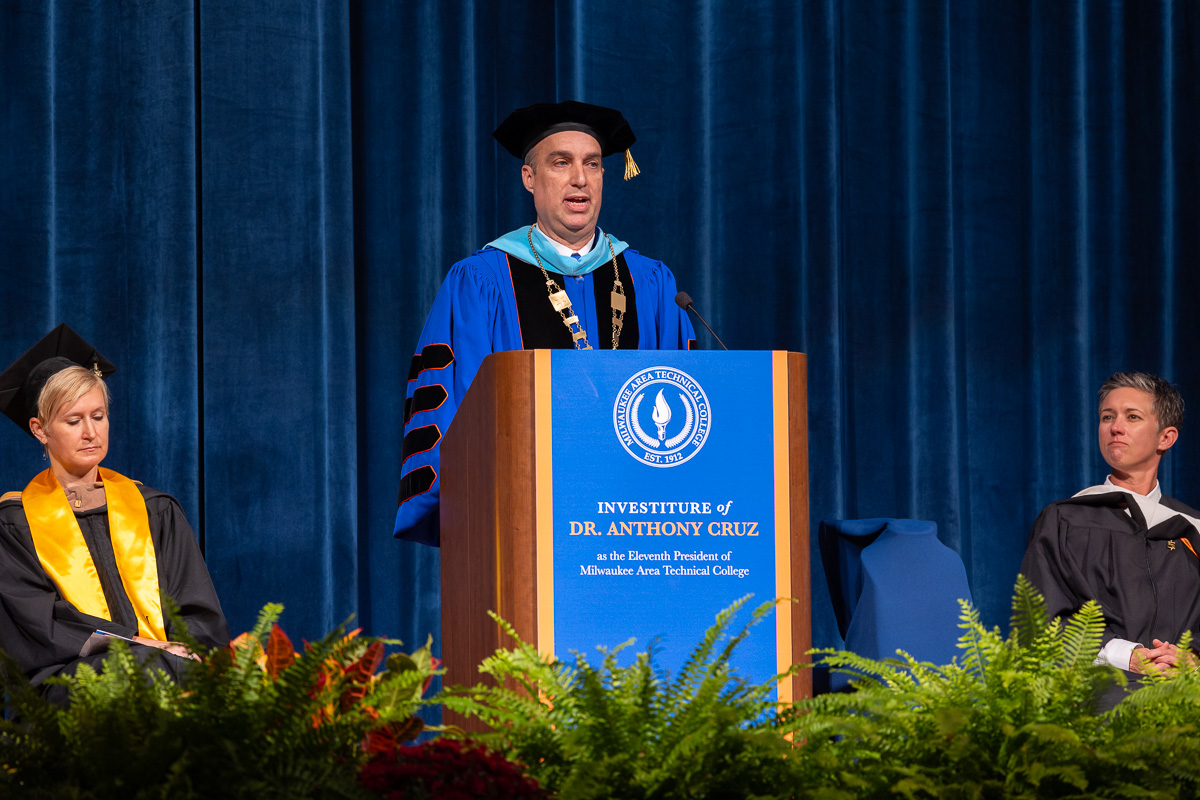 The Investiture ceremony of Dr. Anthony Cruz as the eleventh president of Milwaukee Area Technical College. The event occurred on Friday, September 19, 2025 in the Cooley Auditorium at MATC's downtown campus.